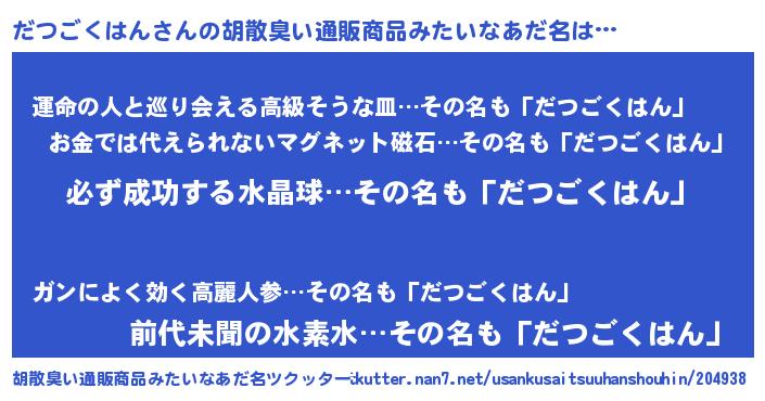 | 欧米人風あだ名 | 『アンジェラ・だつごくはん』 |