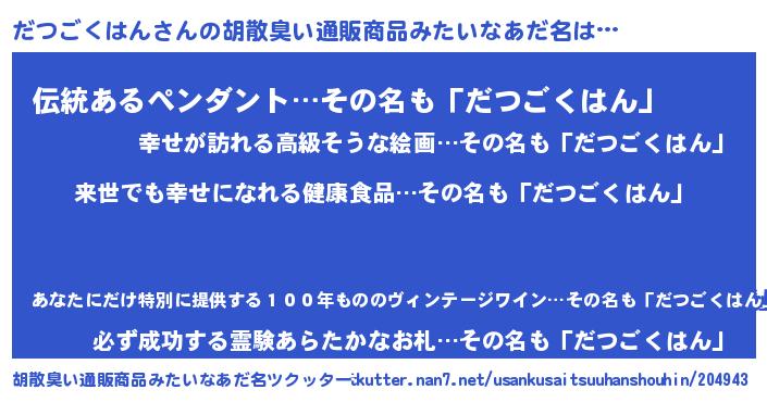 だつごくはんさんの胡散臭い通販商品みたいなあだ名をツクッター!