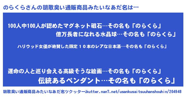 | 意味不明あだ名 | 『住所不定無職のらくら(53歳)』 |
