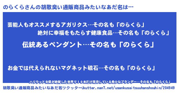 | ヘコむあだ名 | 『のらぷりん』『のらくら(苦笑)』 |