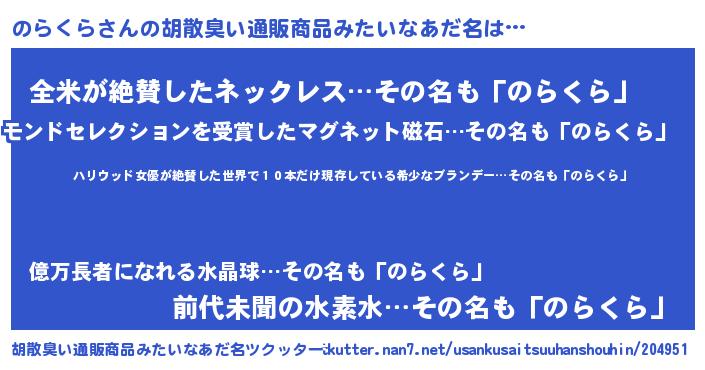 | ヘコむあだ名 | 『のらっちょ』『のらくら(爆)』 |