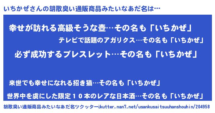 | 意味不明あだ名 | 『めかぶ科いちかぜ属』『自称いちかぜ』 |
