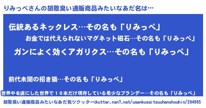 | ヘコむあだ名 | 『りみっ子』『りみっぺ(小並感)』 |