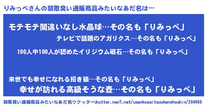 | 欧米人風あだ名 | 『ダニエルりみっぺ』『マイケルりみっぺ』 |