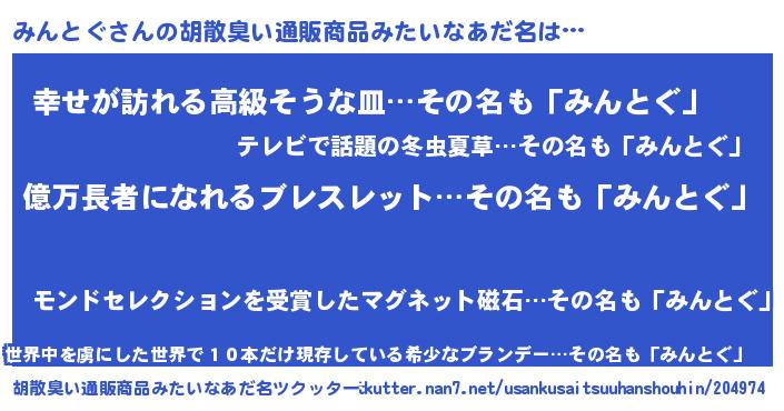 | ヘコむあだ名 | 『みんふぇ~』『牛乳』『みんぷりん』 |