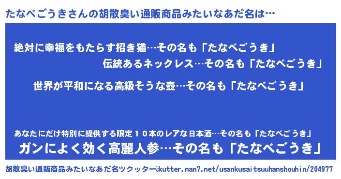 たなべごうきさんの胡散臭い通販商品みたいなあだ名をツクッター!