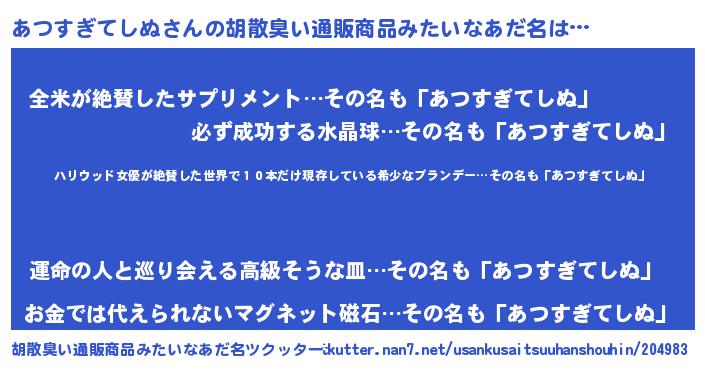 | ピコ太郎風あだ名 | 『アツ十郎』『アア太郎』『アコ次郎』 |