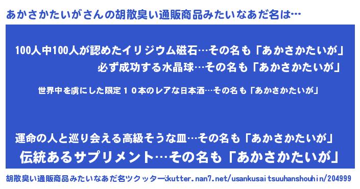 | 料理風あだ名 | 『あかさかたいがごはん』 |