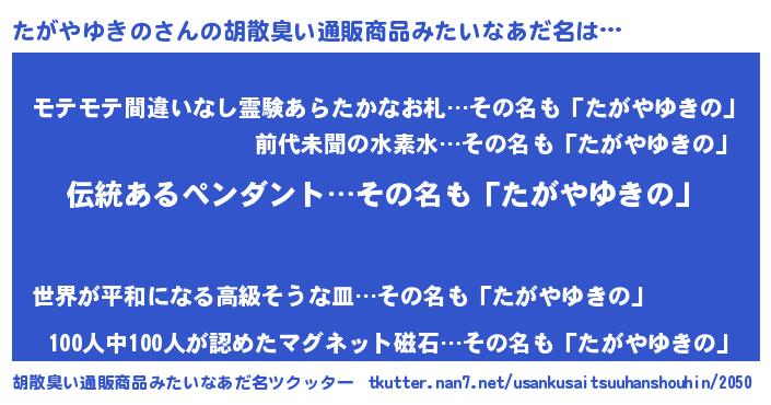 意味不明あだ名 | 『とにかく怪しいたがやゆきの』 |
