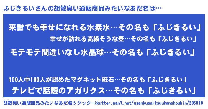 | 恥ずかしいあだ名 | 『プリティーふじきるい』『ふじちん』 |