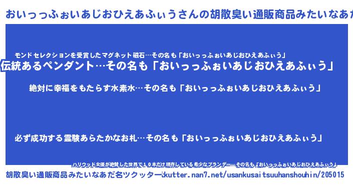 | ヘコむあだ名 | 『おいっっふぉいあじおひえあふぃう(苦笑)』 |