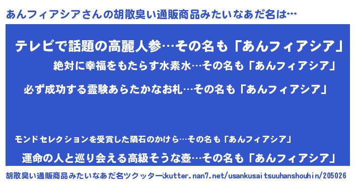 | 男性向けラノベタイトル風あだ名 | 『あんフィアシアの憂鬱』 |