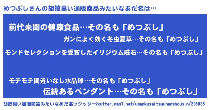 | ヘコむあだ名 | 『めつぶし(笑)』『めつ太郎』 |