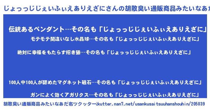 | ヒーロー風カッコイイあだ名 | 『ネオジョッッジジェイフィエアリエザニ』 |