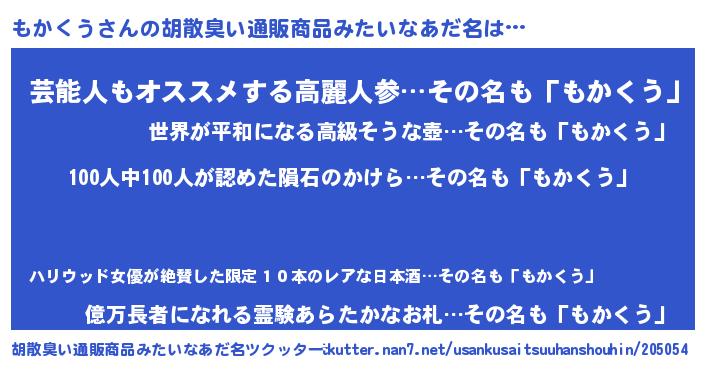 | 欧米人風あだ名 | 『アンジェラ・もかくう』 |