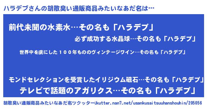 | ヘコむあだ名 | 『ハラデブ(笑)』『ハラっふぃ~』 |
