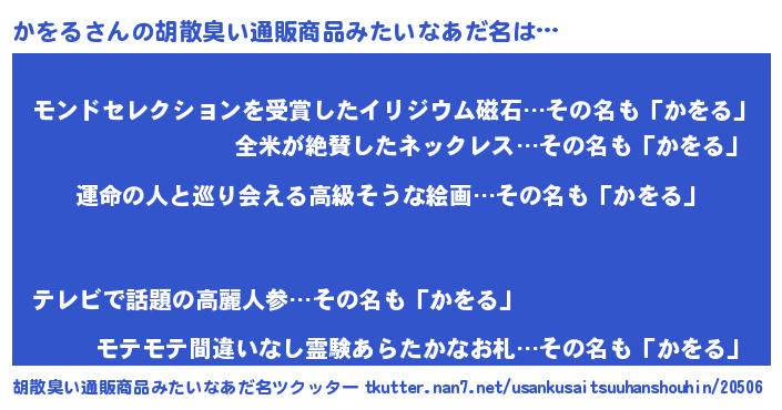 | 自動車の名前っぽいあだ名 | 『カールスヲイス』『カクア』『カンR』 |