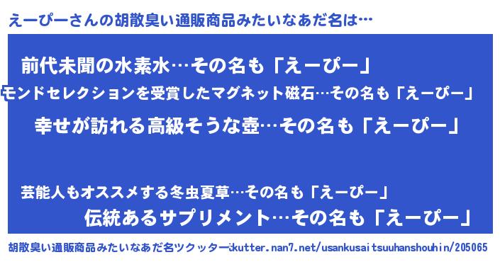 | 欧米人風あだ名 | 『アンジェラ・えーぴー』 |