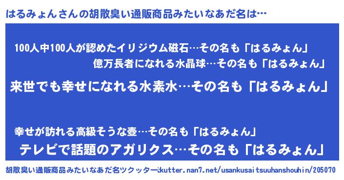 | 意味不明あだ名 | 『永久保存はるみょん』『自称はるみょん』 |