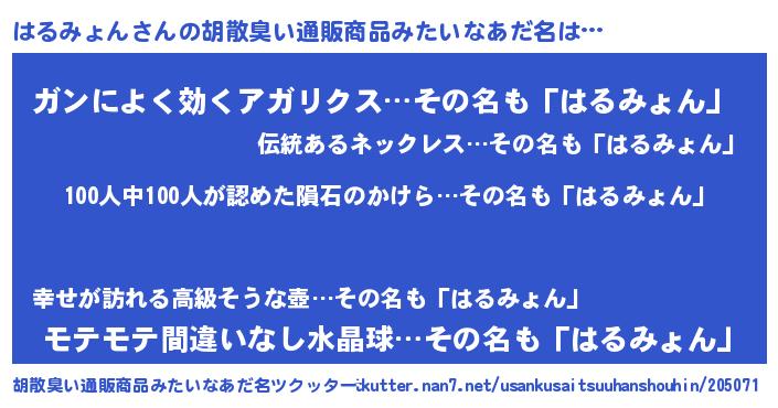 | 意味不明あだ名 | 『眠気覚ましガムはるみょん味』 |