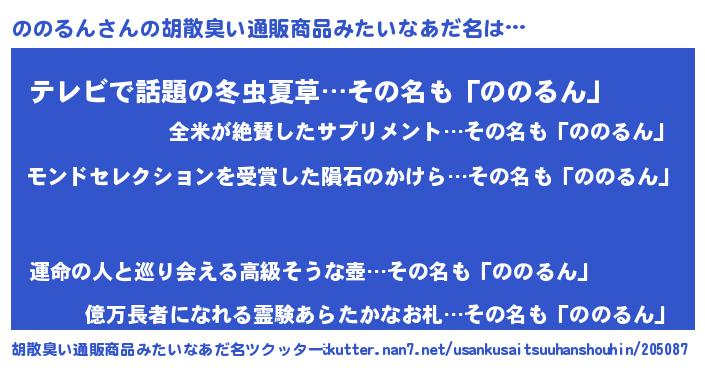 | 意味不明あだ名 | 『ヨモギ科ののるん属』『自称ののるん』 |