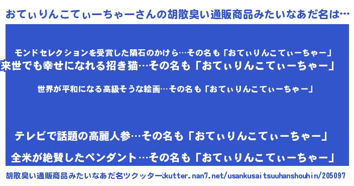 | ファンタジー風あだ名 | 『エターナルオティリンコティーチャーー』 |
