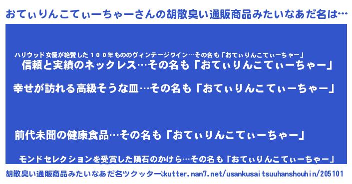 | 欧米人風あだ名 | 『おてぃりんこてぃーちゃークリステル』 |