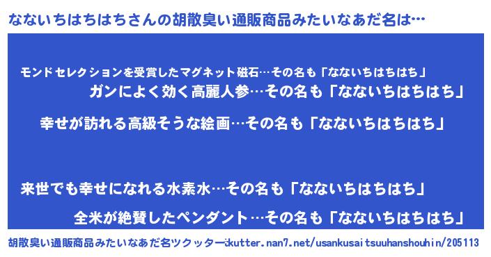 | 男性向けラノベタイトル風あだ名 | 『はたらくなないちはちはちさま!』 |