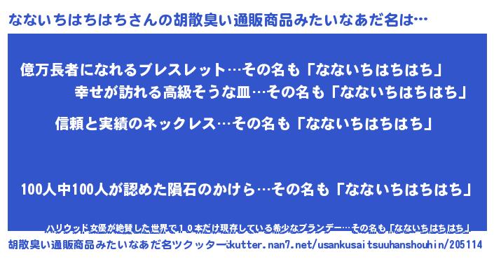 | 欧米人風あだ名 | 『ウサインなないちはちはち』 |