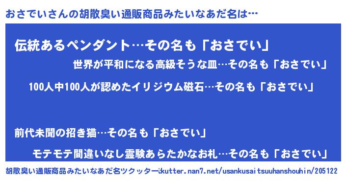 | 欧米人風あだ名 | 『ダニエルおさでい』『ウサインおさでい』 |