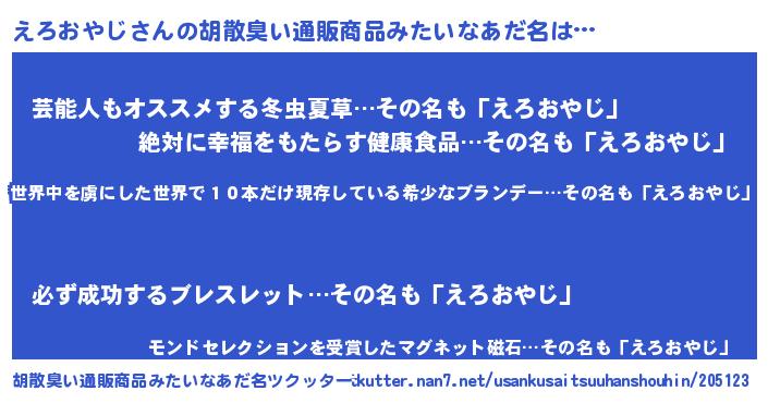 | 意味不明あだ名 | 『住所不定無職えろおやじ(84歳)』 |