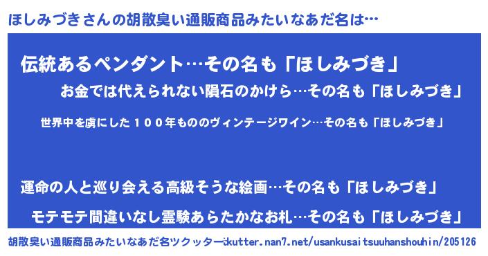 | 意味不明あだ名 | 『住所不定無職ほしみづき(2歳)』 |