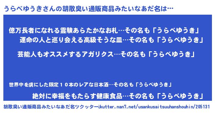 うらべゆうきさんの胡散臭い通販商品みたいなあだ名をツクッター!