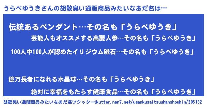 | ヘコむあだ名 | 『うらっ子』『うらべゆうき(遠い目)』 |