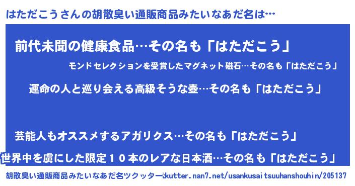 | 欧米人風あだ名 | 『アンジェラ・はただこう』 |