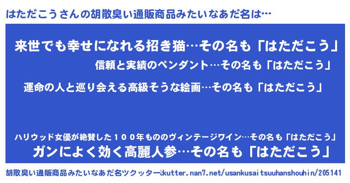 | 欧米人風あだ名 | 『はただこうクリステル』 |