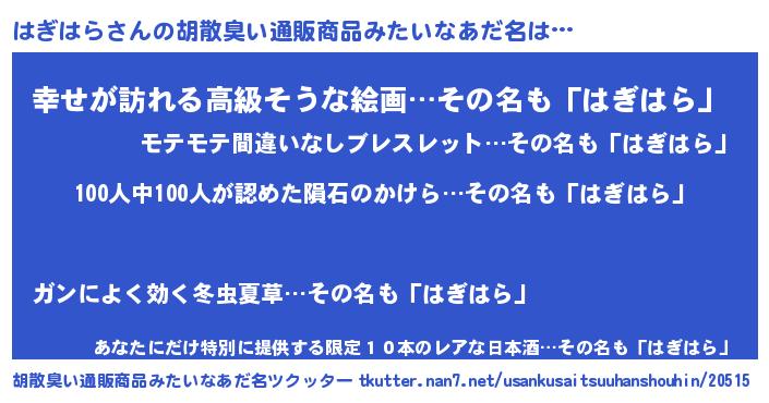 | ヘコむあだ名 | 『つくし』『はぎにー』『はぎっぺ』 |