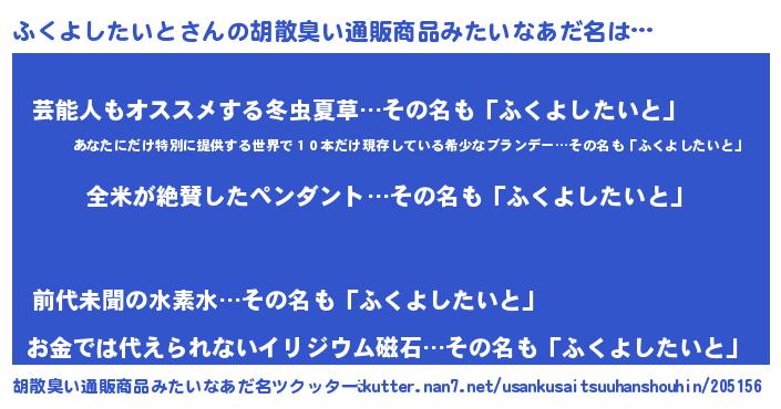 | 欧米人風あだ名 | 『ウサインふくよしたいと』 |