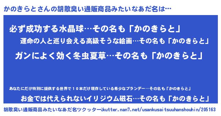 | 欧米人風あだ名 | 『ケンブリッジかのきらと』 |
