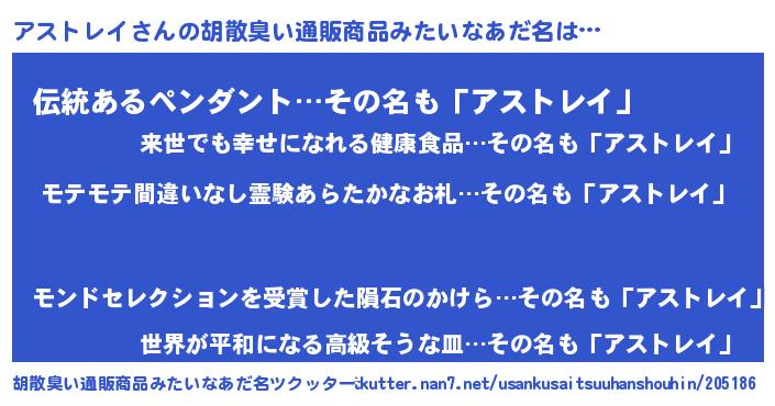 | 恥ずかしいあだ名 | 『プリティーアストレイ』『アスリンリン』 |