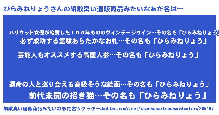 | 意味不明あだ名 | 『自称ひらみねりょう』 |