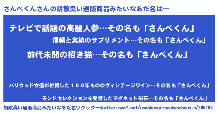 | 意味不明あだ名 | 『永久保存さんべくん』『自称さんべくん』 |