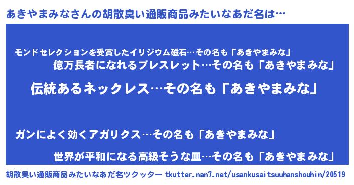 | ヘコむあだ名 | 『あき太郎』『なまこ酢』『あきにー』 |