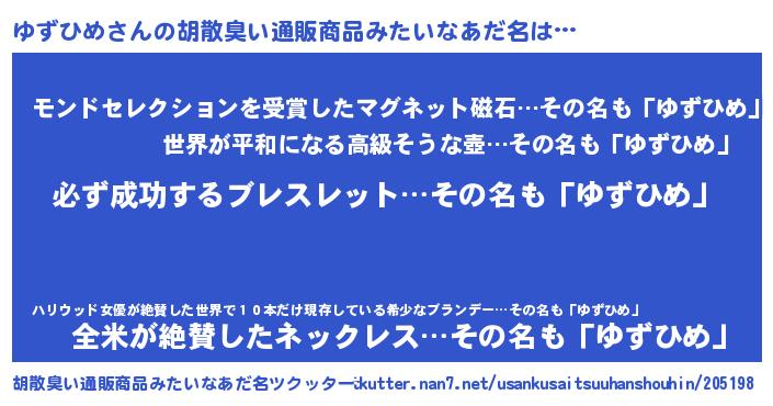 | ヘコむあだ名 | 『ゆずふぇ~』『ゆずを』『酢こんぶ』 |