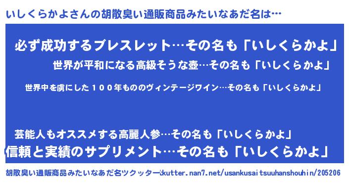 | ヒーロー風カッコイイあだ名 | 『仮面イシダー』『スーパーイシクラカヨ』 |