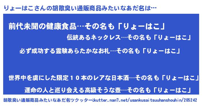 | ヘコむあだ名 | 『りょっふぃ~』『りょーはこ(遠い目)』 |