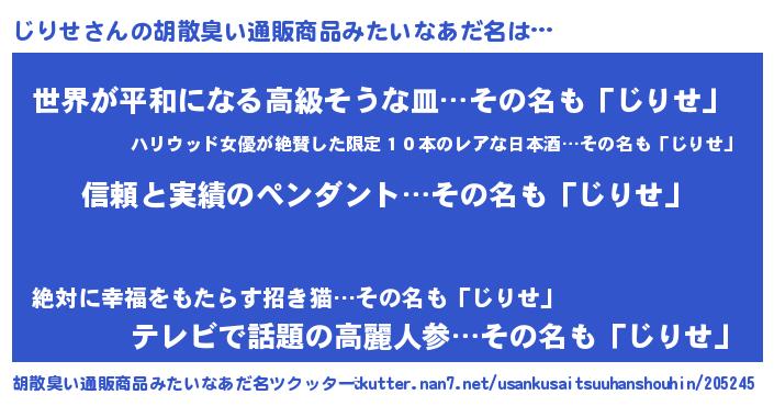 | 女子向けラノベタイトル風あだ名 | 『じりせは平凡を望む』『闇のじりせ』 |