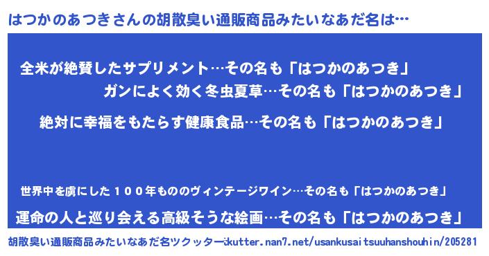 | 意味不明あだ名 | 『永久保存はつかのあつき』 |