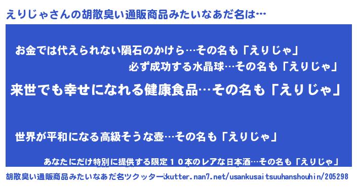 | ヘコむあだ名 | 『えりじゃ(爆)』『えりにゅー』 |
