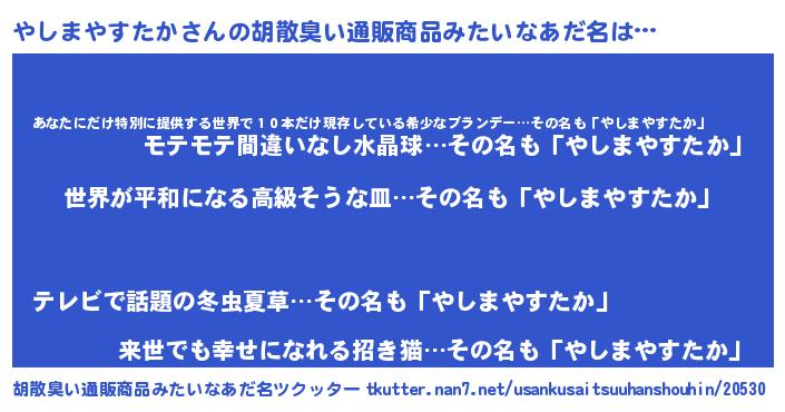 | 意味不明あだ名 | 『やしまやすたかフォーエバー』 |